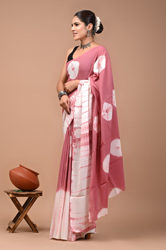 Printed Pure Cotton Mulmul Saree With Blouse