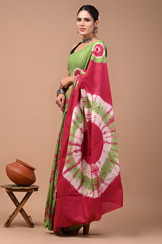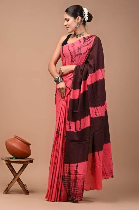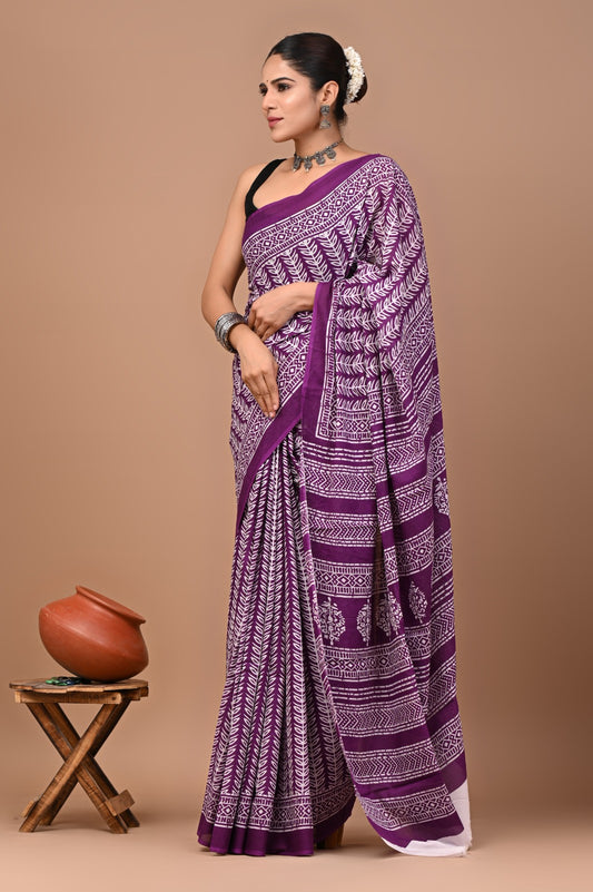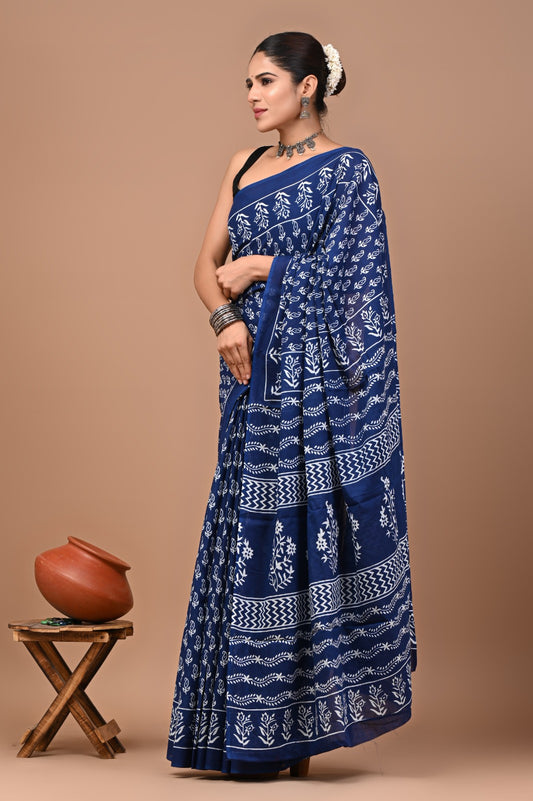 Jaipuri Printed Pure Cotton Mulmul Saree With Blouse