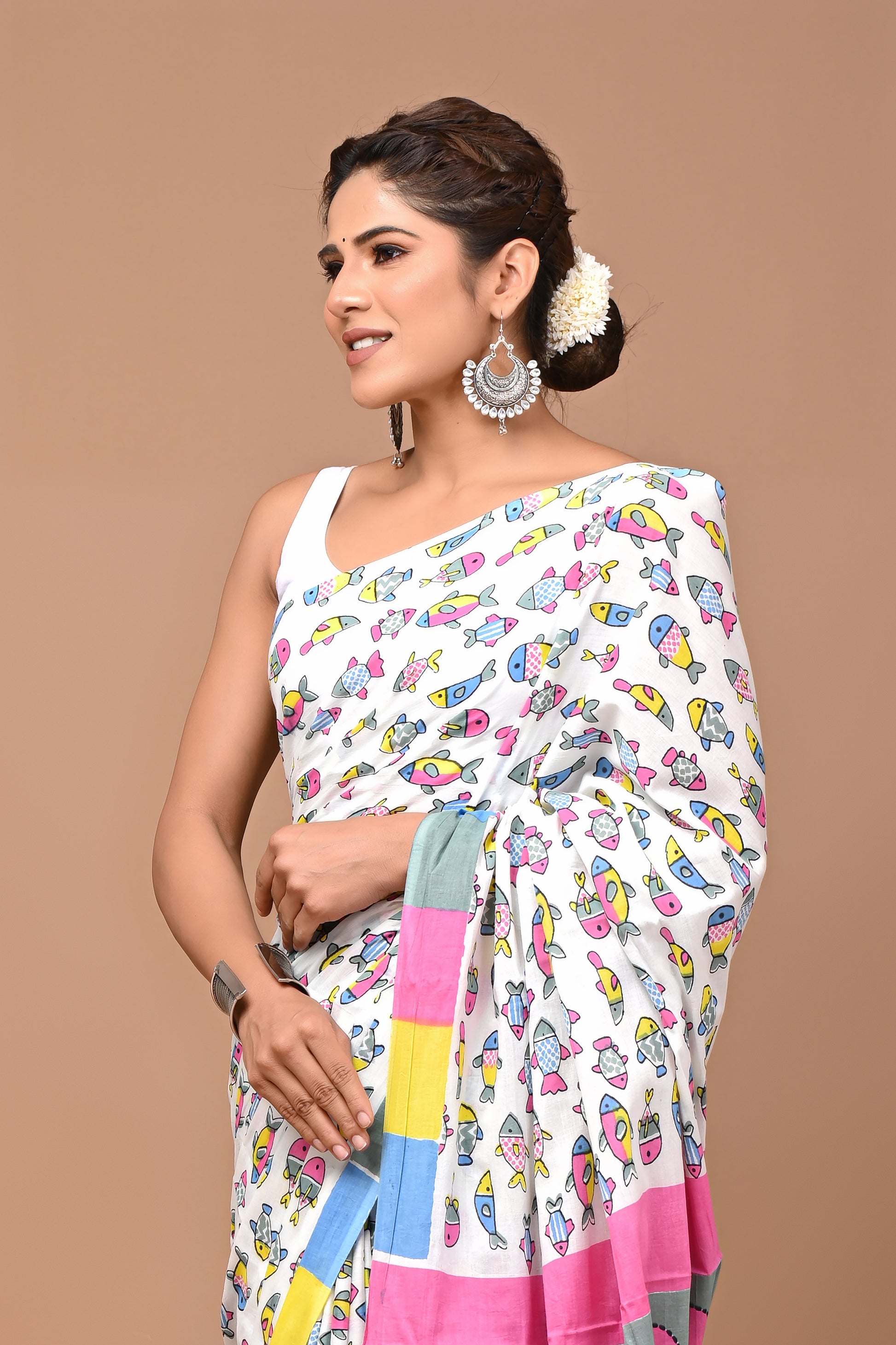 - FABRIC : Mulmul Cotton saree with similar fabric Blouse pc || Work: Printed ,Block print ,Traditional Ethnic Look