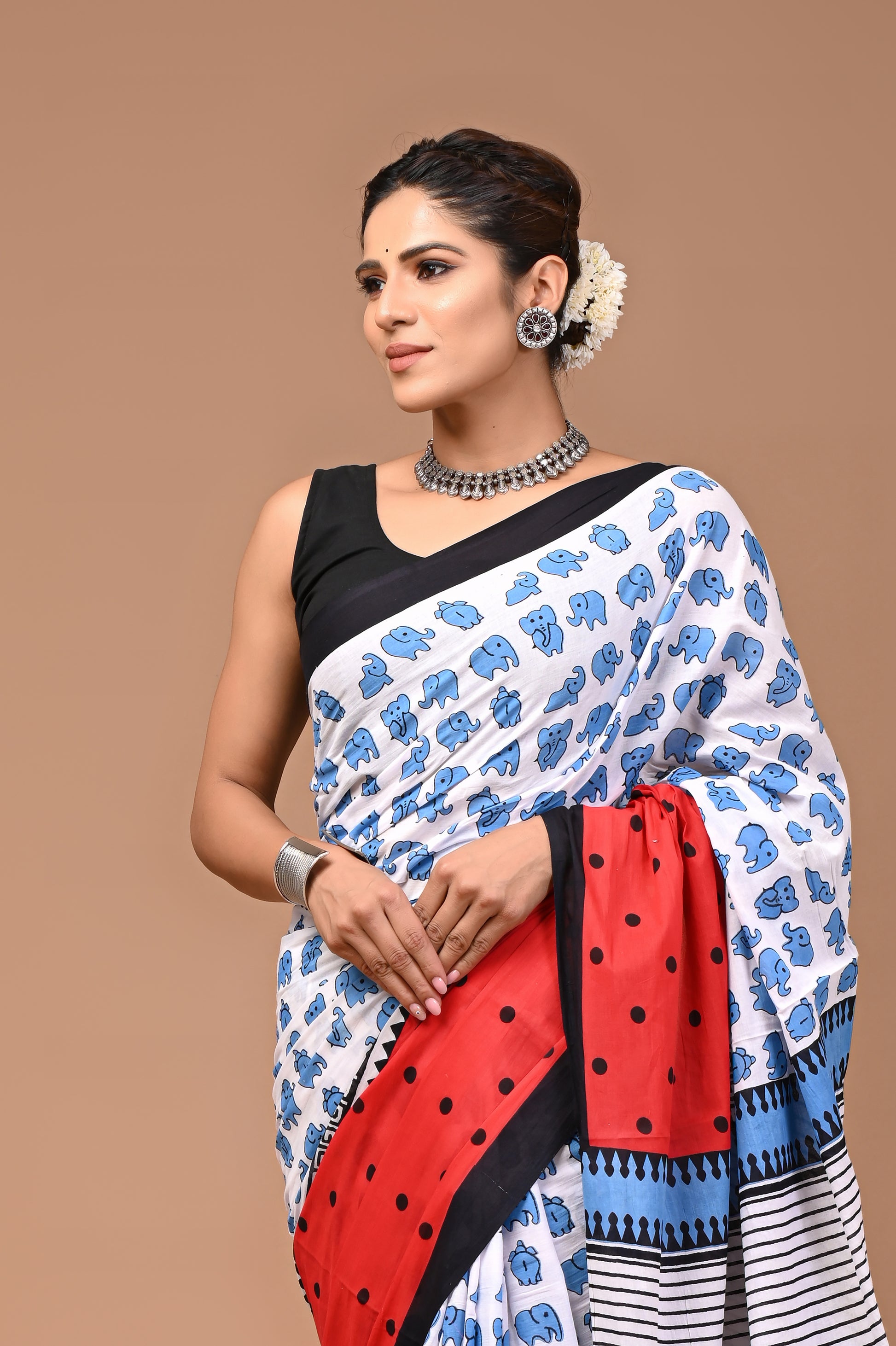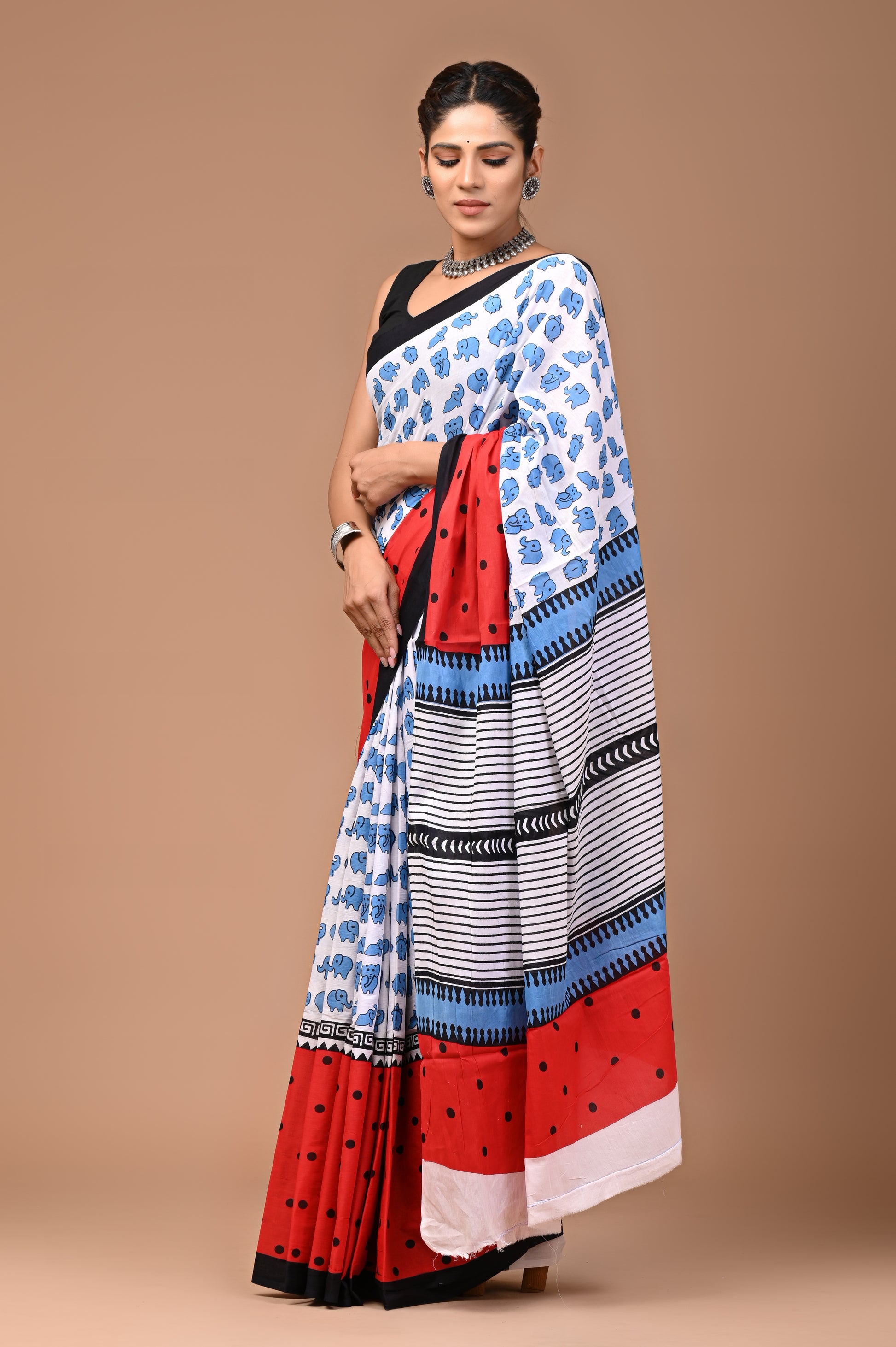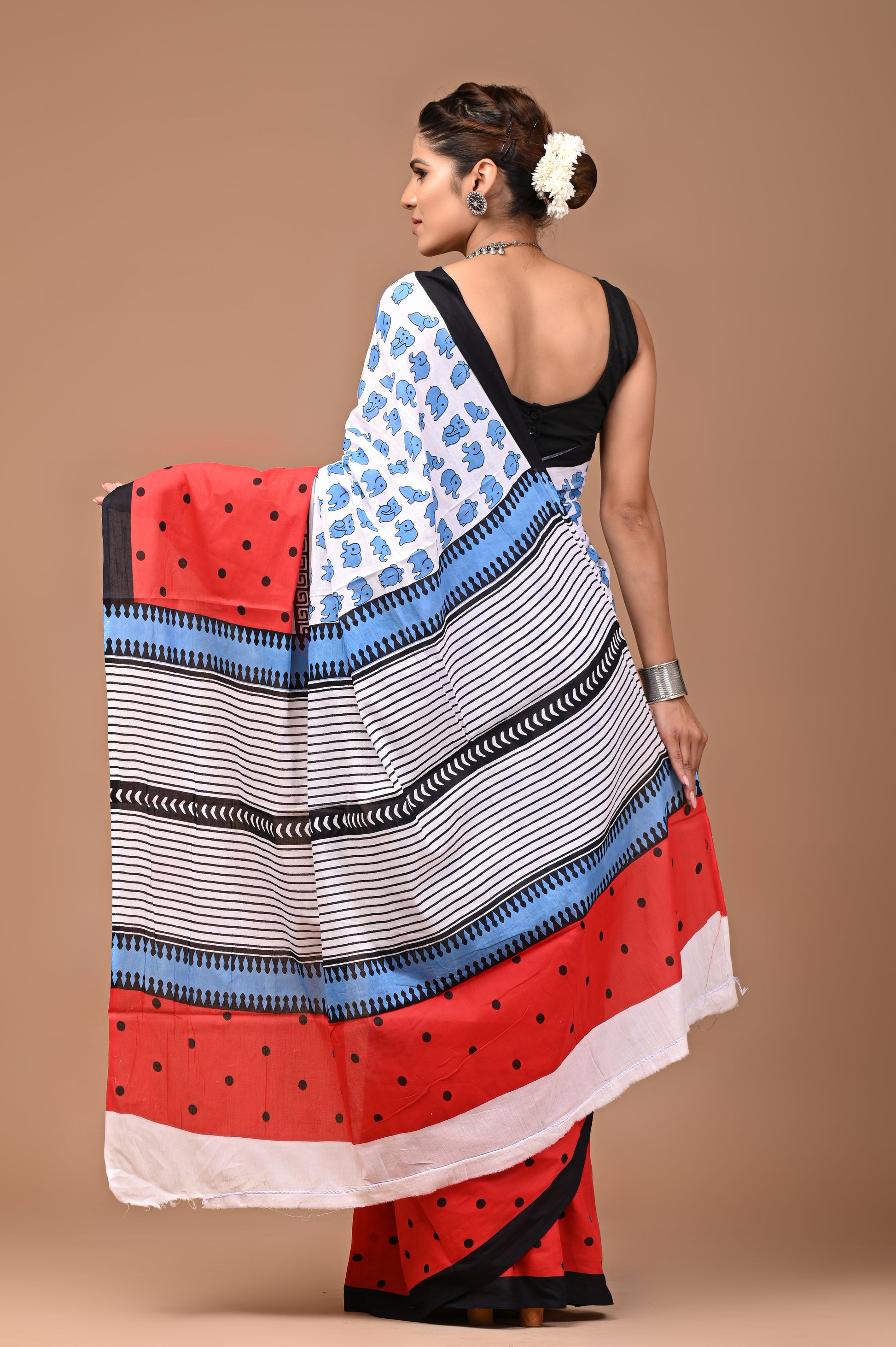 - FABRIC : Mulmul Cotton saree with similar fabric Blouse pc || Work: Printed ,Block print ,Traditional Ethnic Look