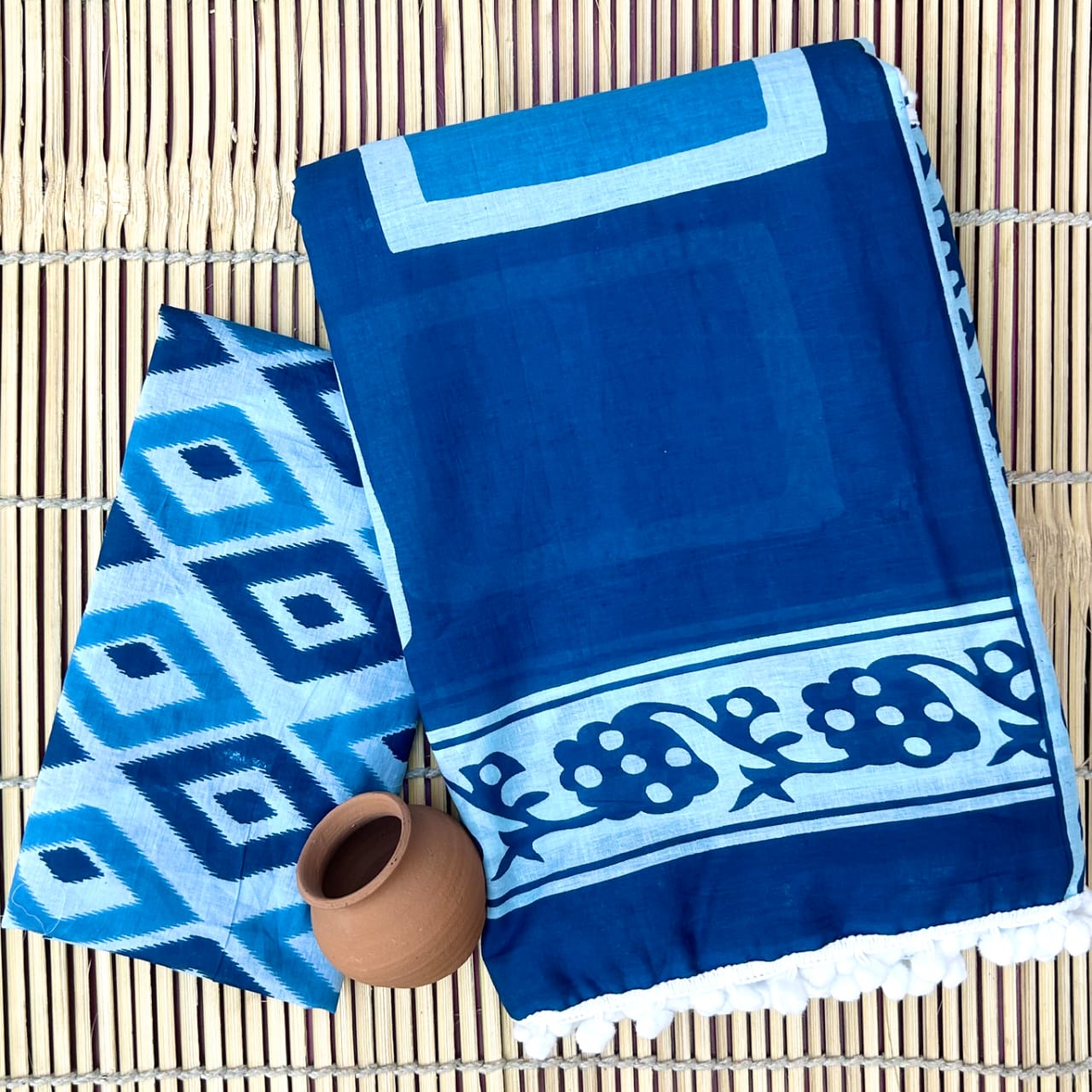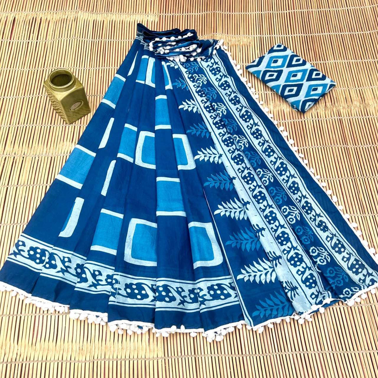 - FABRIC : Mulmul Cotton saree with similar fabric Blouse pc || Work: Printed ,Block print ,Traditional Ethnic Look