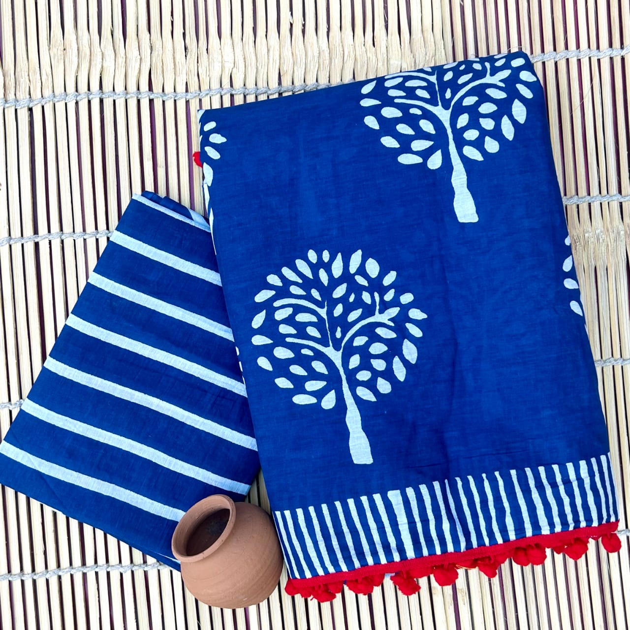 - FABRIC : Mulmul Cotton saree with similar fabric Blouse pc || Work: Printed ,Block print ,Traditional Ethnic Look