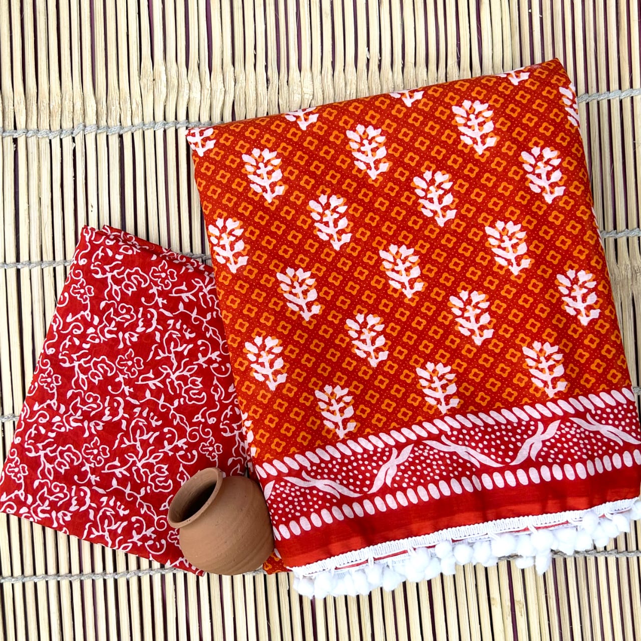 - FABRIC : Mulmul Cotton saree with similar fabric Blouse pc || Work: Printed ,Block print ,Traditional Ethnic Look