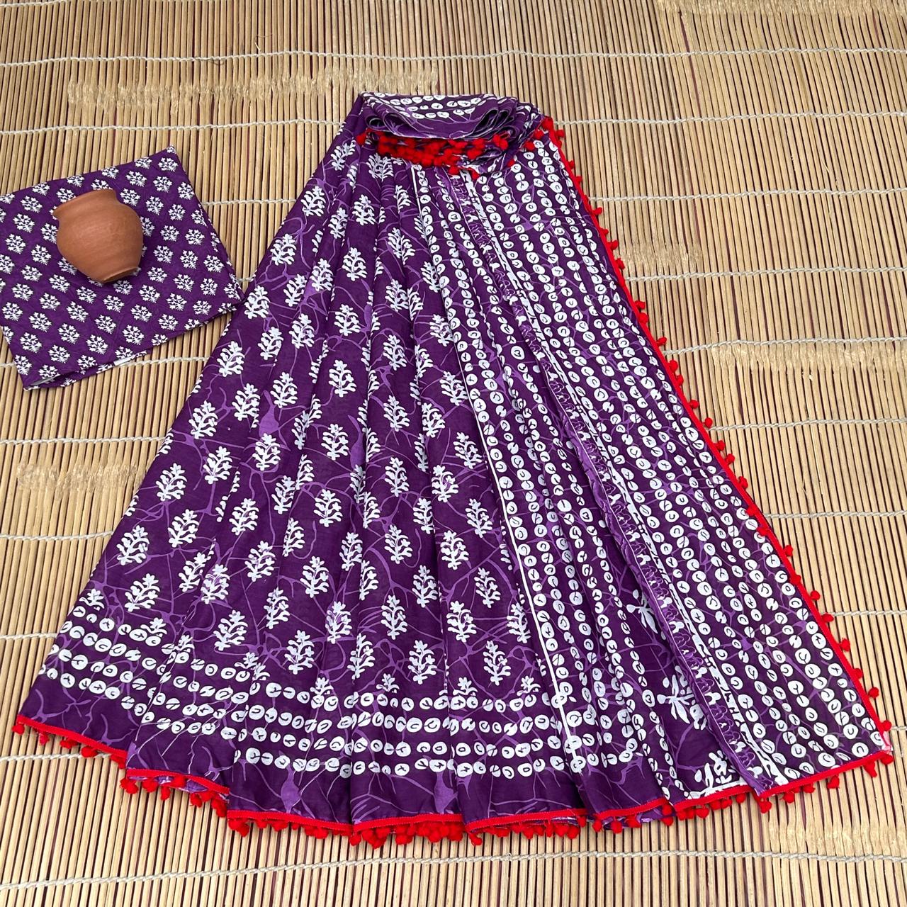 - FABRIC : Mulmul Cotton saree with similar fabric Blouse pc || Work: Printed ,Block print ,Traditional Ethnic Look