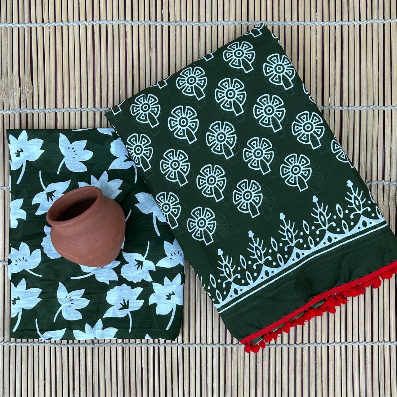 - FABRIC : Mulmul Cotton saree with similar fabric Blouse pc || Work: Printed ,Block print ,Traditional Ethnic Look