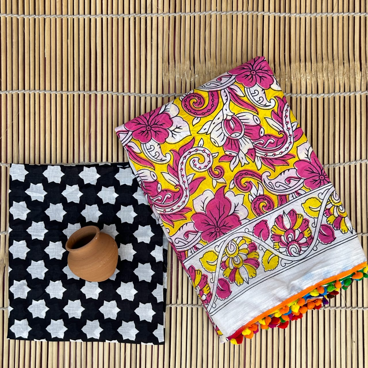 - FABRIC : Mulmul Cotton saree with similar fabric Blouse pc || Work: Printed ,Block print ,Traditional Ethnic Look