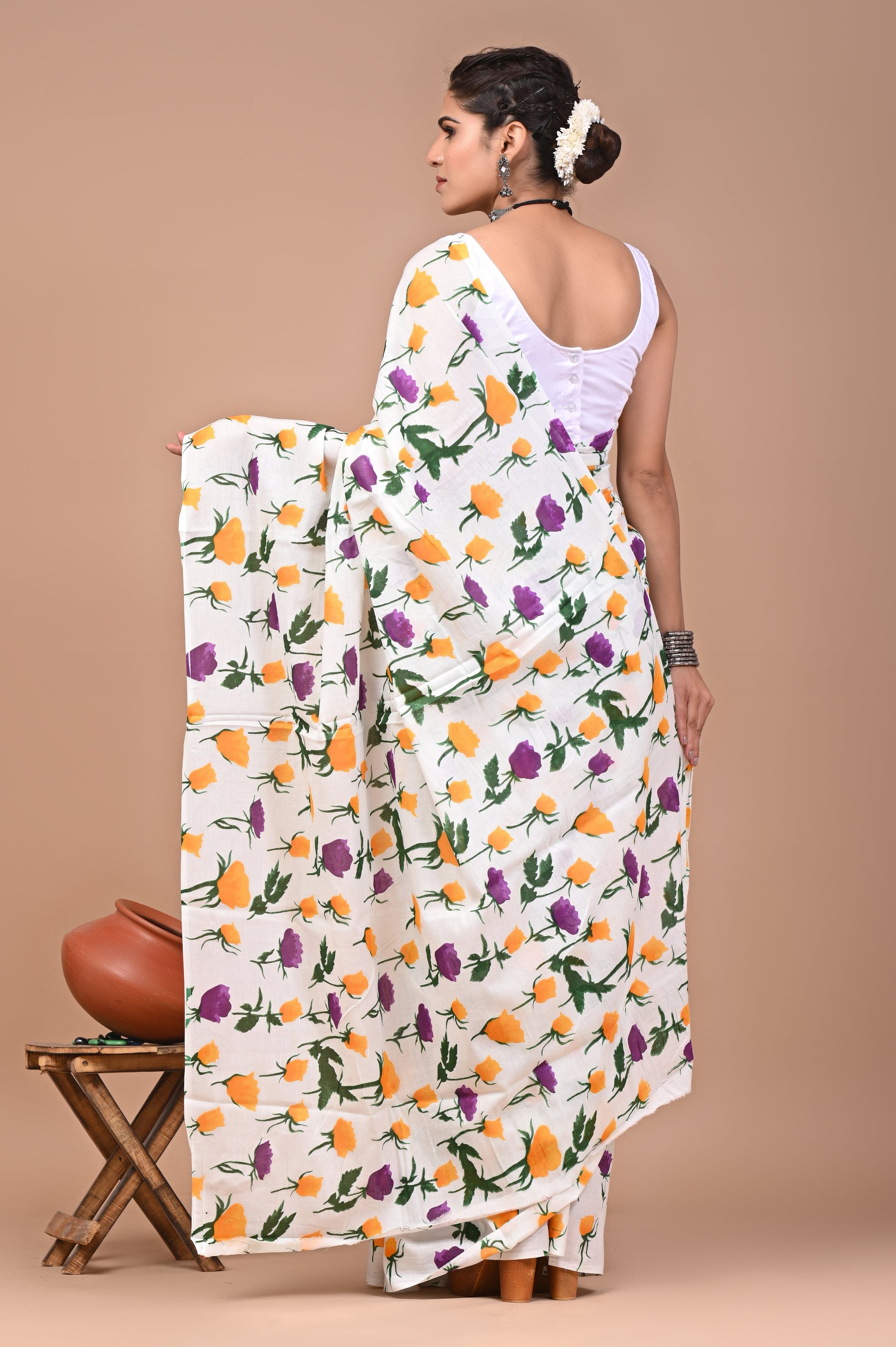- FABRIC : Mulmul Cotton saree with similar fabric Blouse pc || Work: Printed ,Block print ,Traditional Ethnic Look