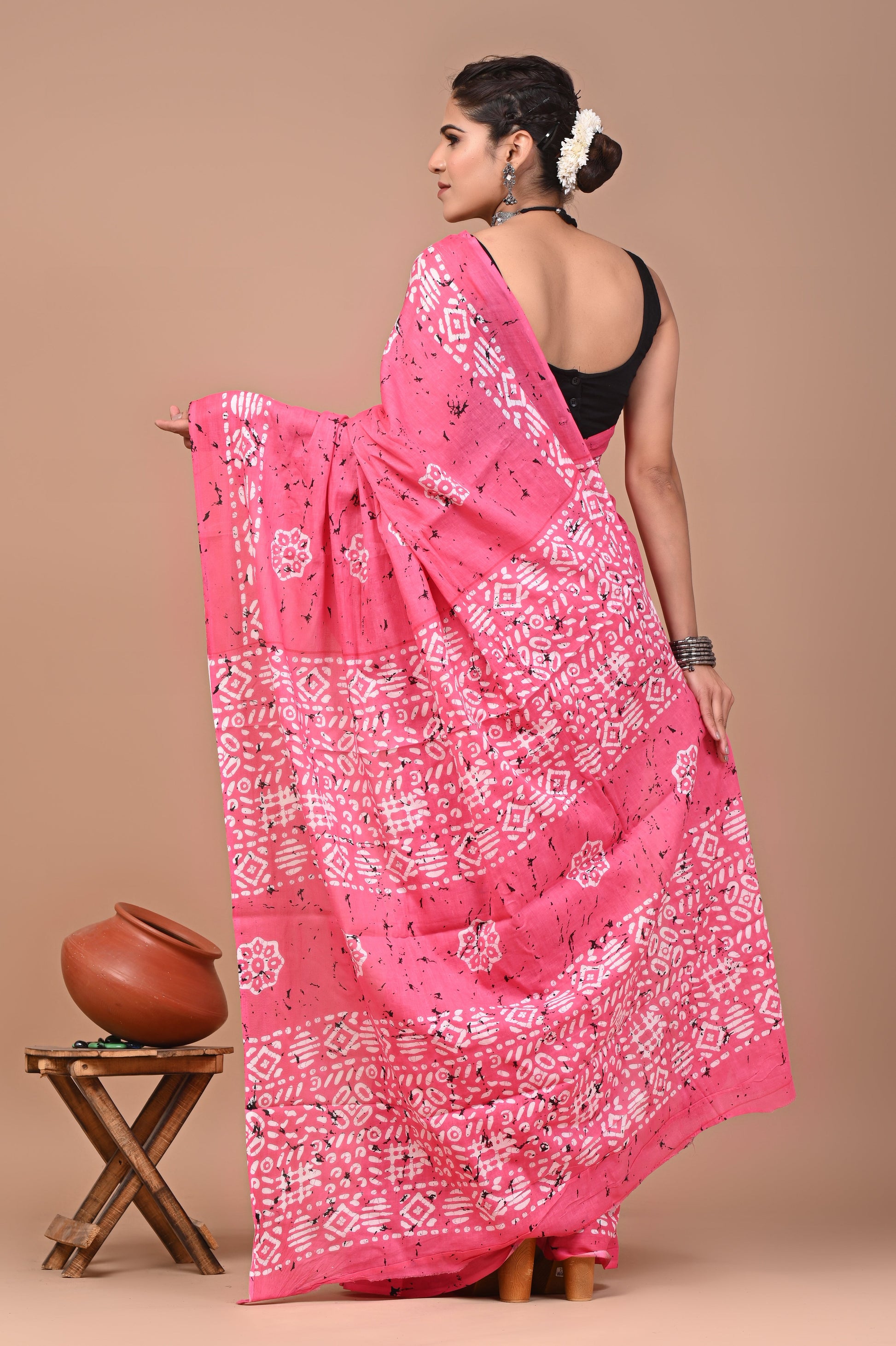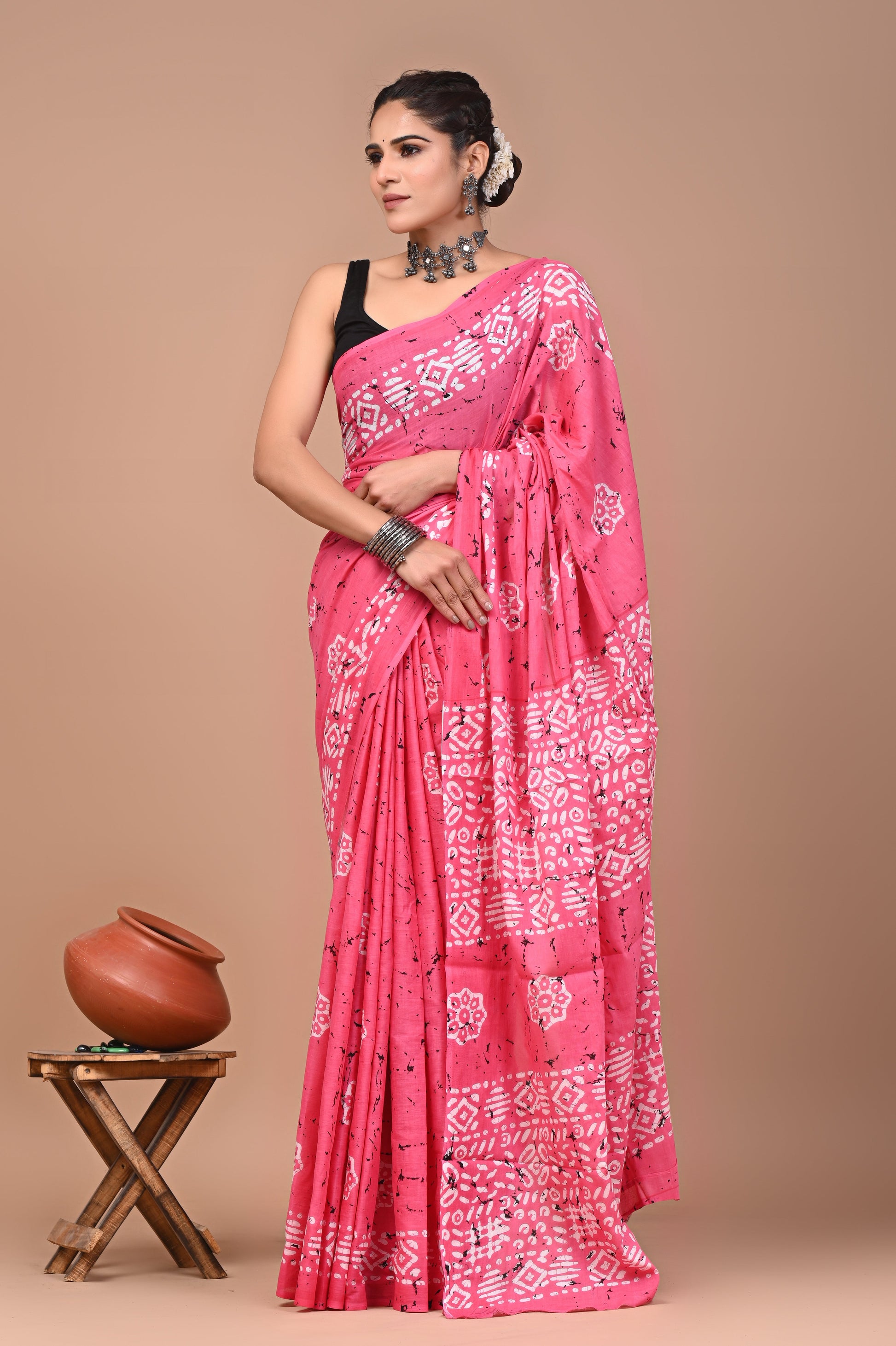 - FABRIC : Mulmul Cotton saree with similar fabric Blouse pc || Work: Printed ,Block print ,Traditional Ethnic Look