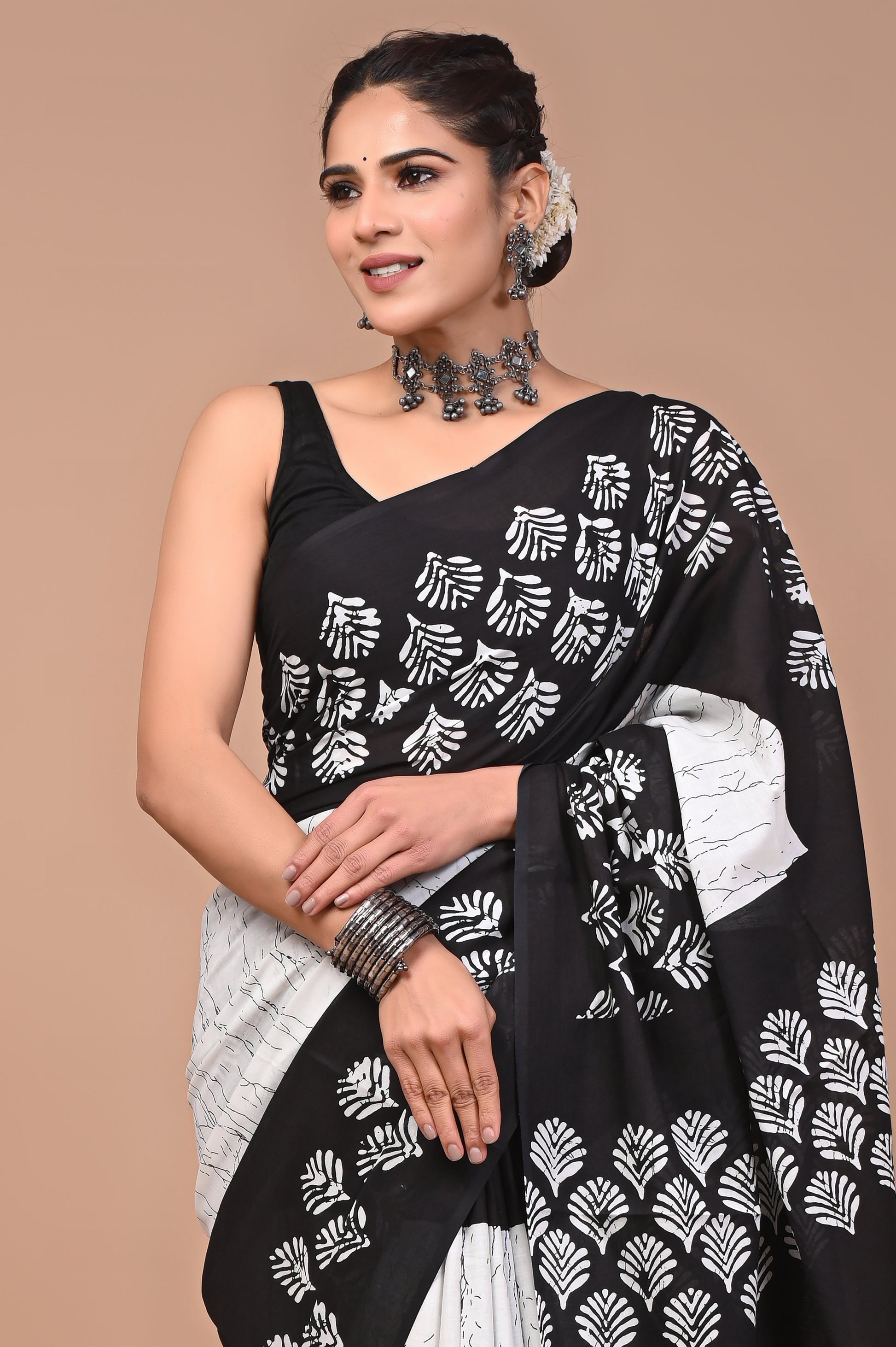 - FABRIC : Mulmul Cotton saree with similar fabric Blouse pc || Work: Printed ,Block print ,Traditional Ethnic Look
