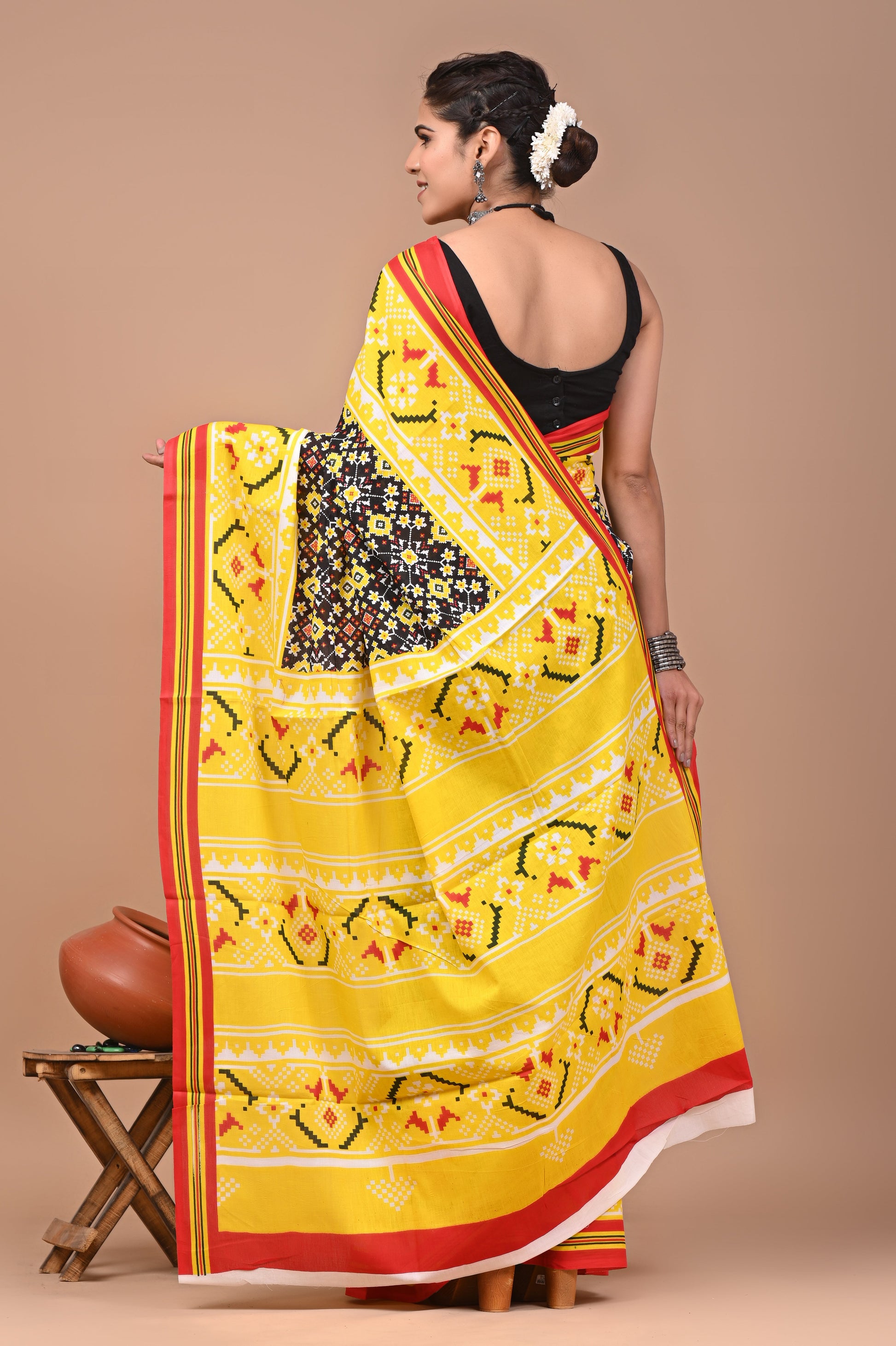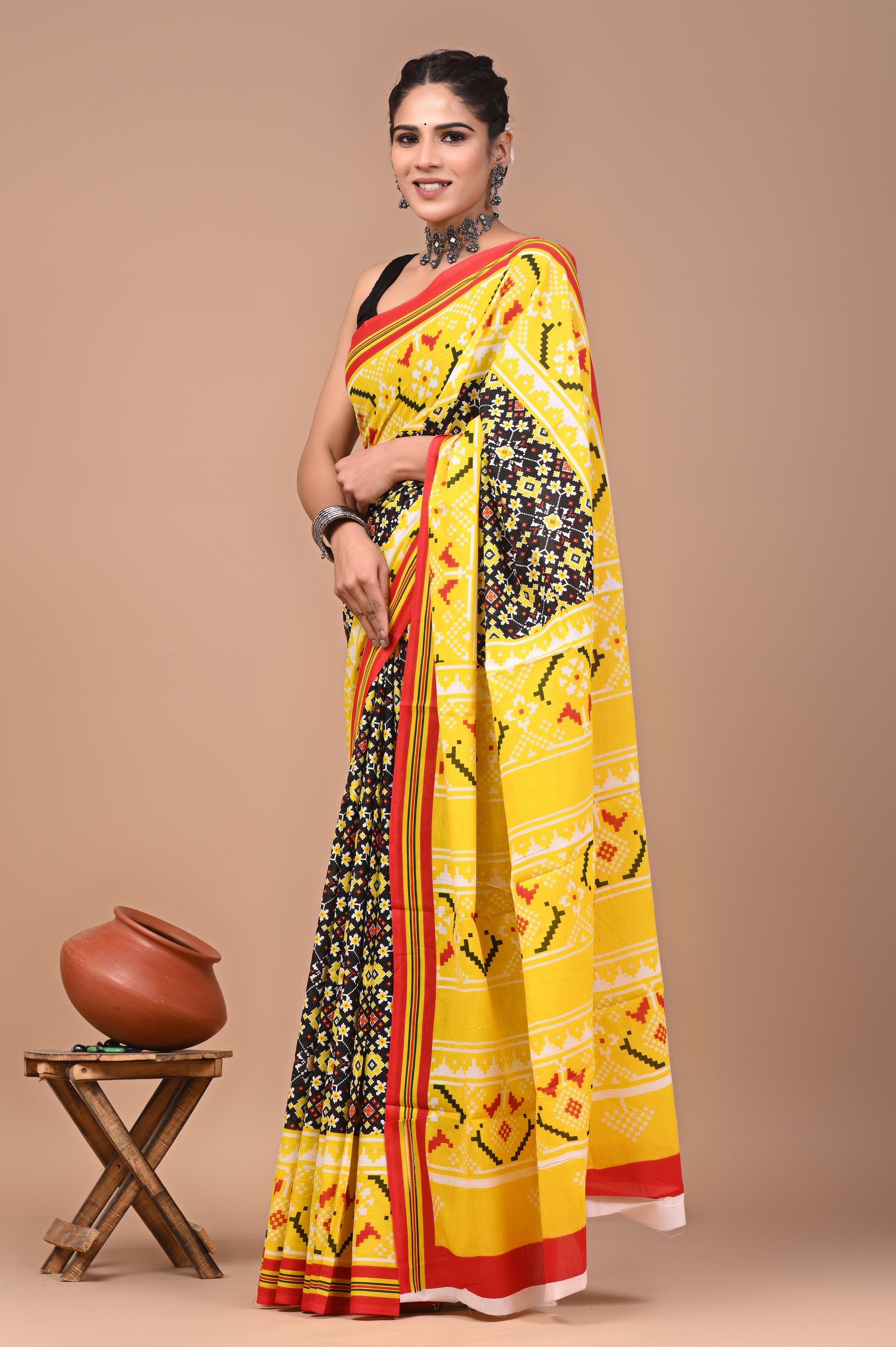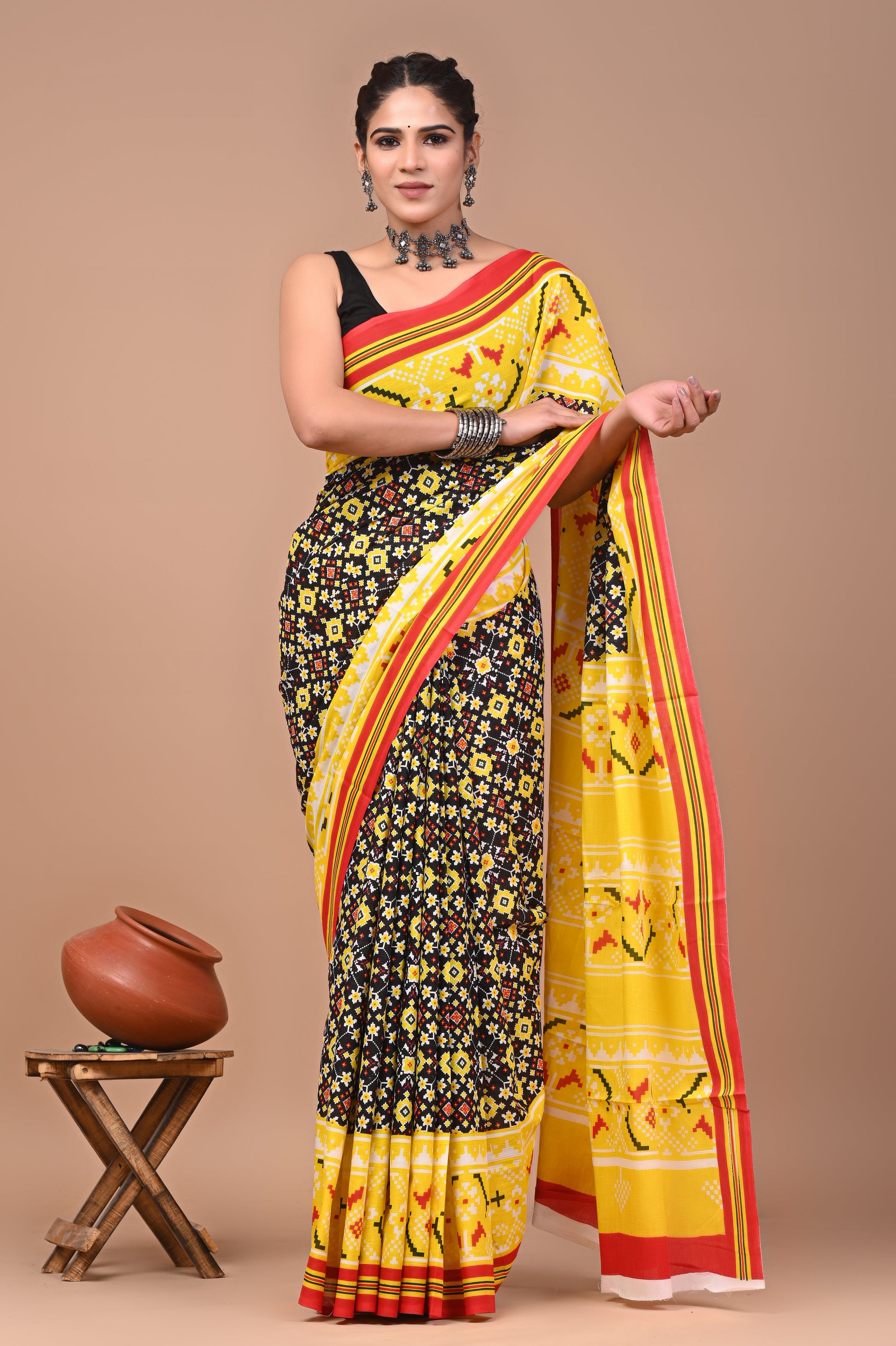 - FABRIC : Mulmul Cotton saree with similar fabric Blouse pc || Work: Printed ,Block print ,Traditional Ethnic Look