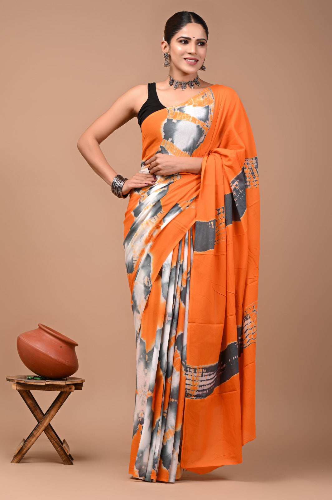 - FABRIC : Mulmul Cotton saree with similar fabric Blouse pc || Work: Printed ,Block print ,Traditional Ethnic Look
