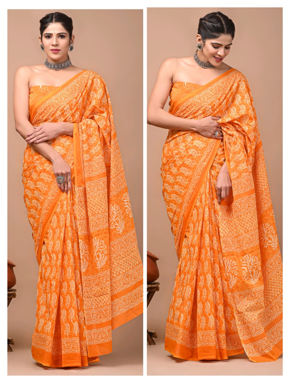 - FABRIC : Mulmul Cotton saree with similar fabric Blouse pc || Work: Printed ,Block print ,Traditional Ethnic Look