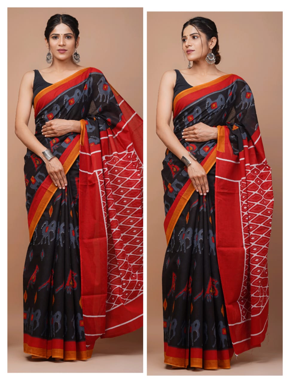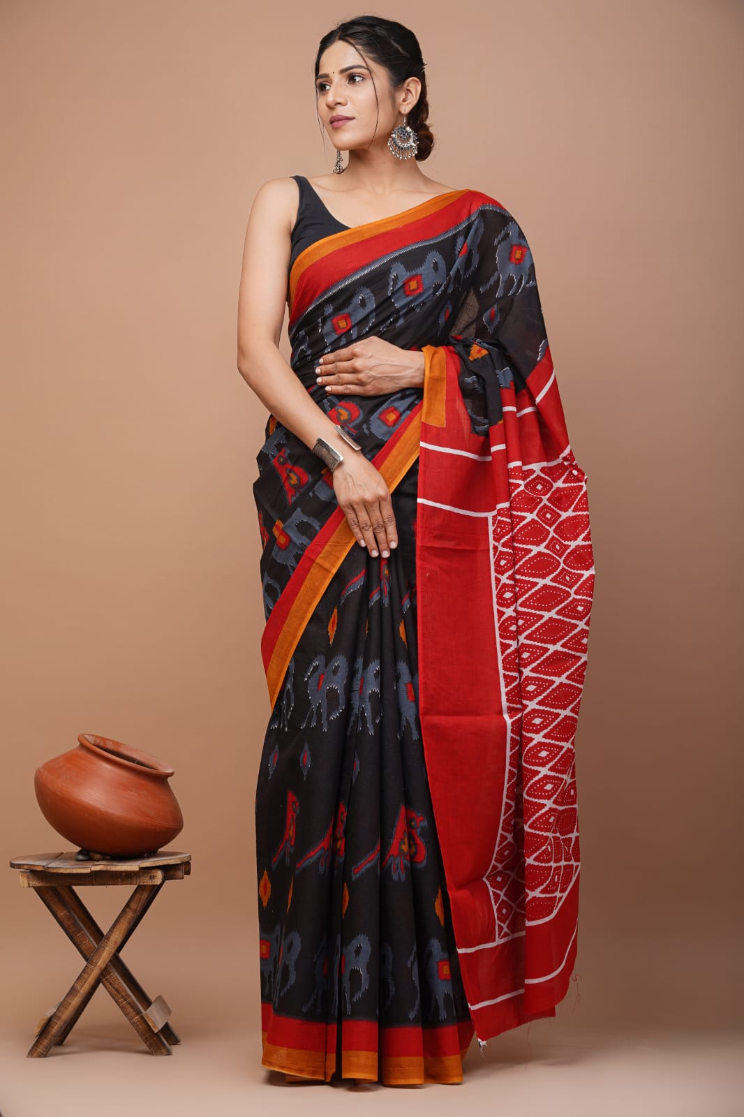 - FABRIC : Mulmul Cotton saree with similar fabric Blouse pc || Work: Printed ,Block print ,Traditional Ethnic Look