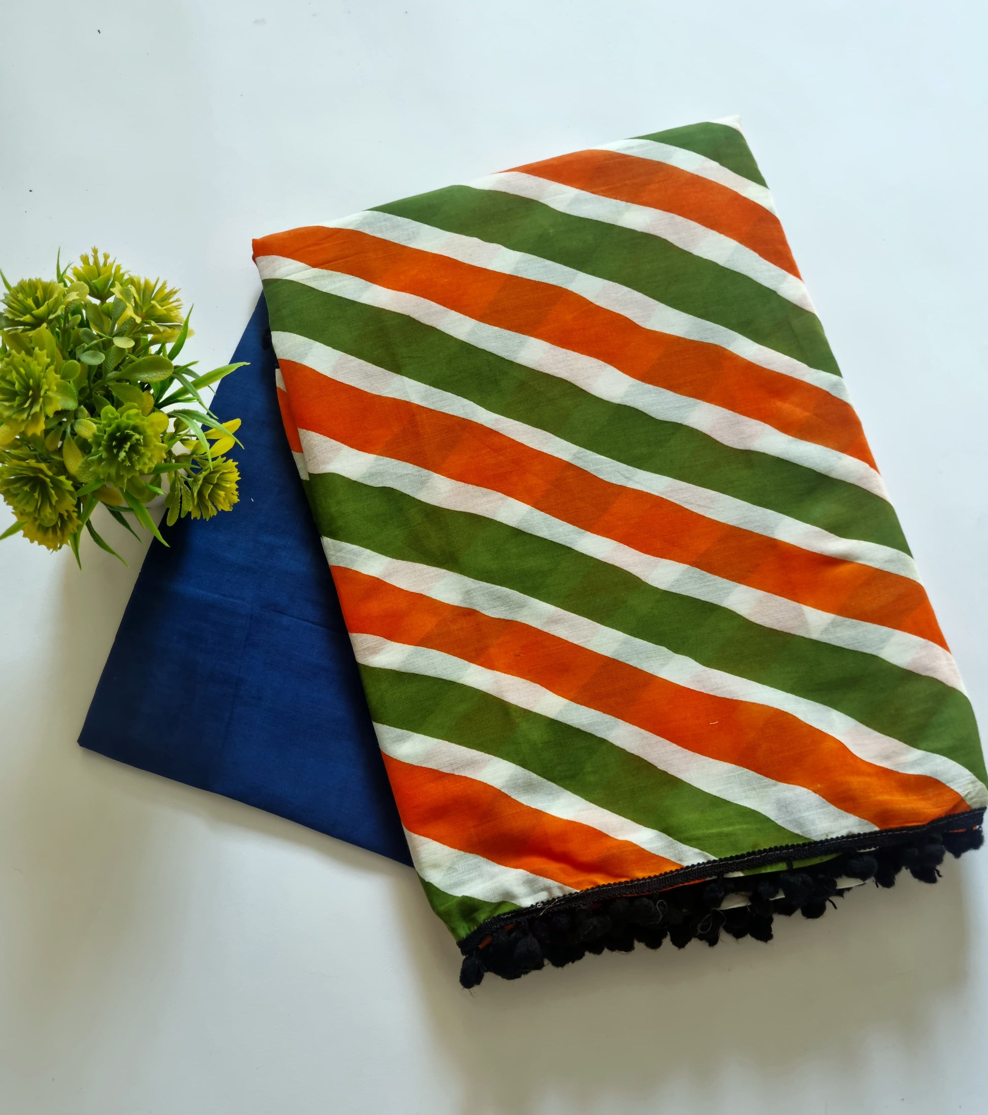 Printed Pure Cotton Mulmul Saree With PomPom Lace