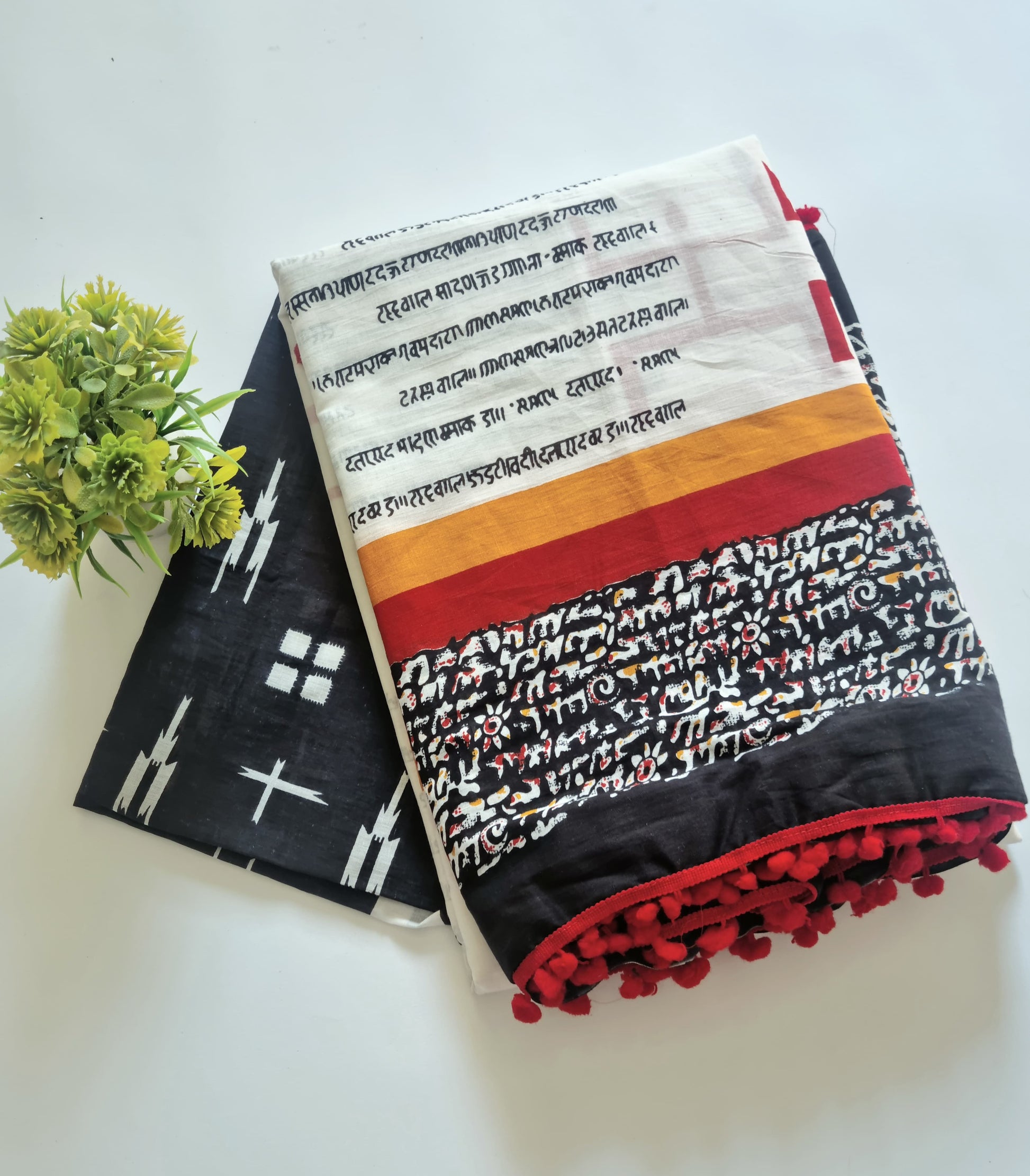Printed Pure Cotton Mulmul Saree With PomPom Lace
